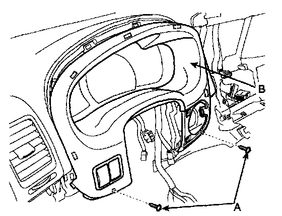 5. Remove the door warning switch and key illumination lamp (A) after loosening the screws (B) and disconnecting the 6P connector.