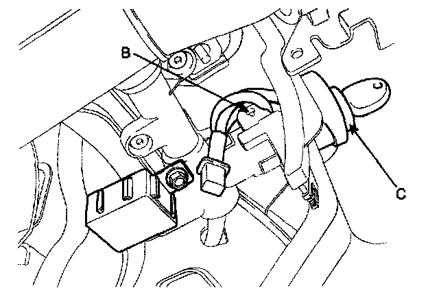 6. Remove the key lock cylinder (C) after pushing lock pin (B) with key ACC.