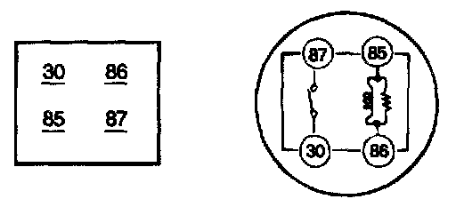 4. Apply 12 V to terminal 85 and ground to terminal 86. Check for continuity between terminals 30 and 87.
