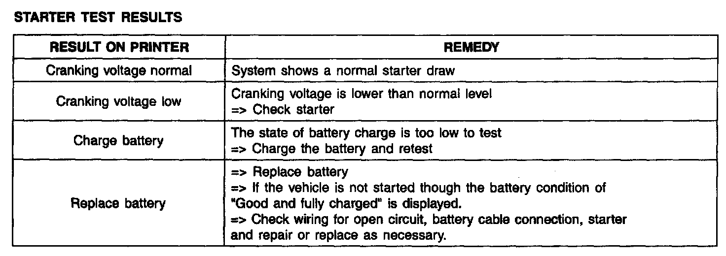 3. Cranking voltage and starter test results will be displayed on the screen.