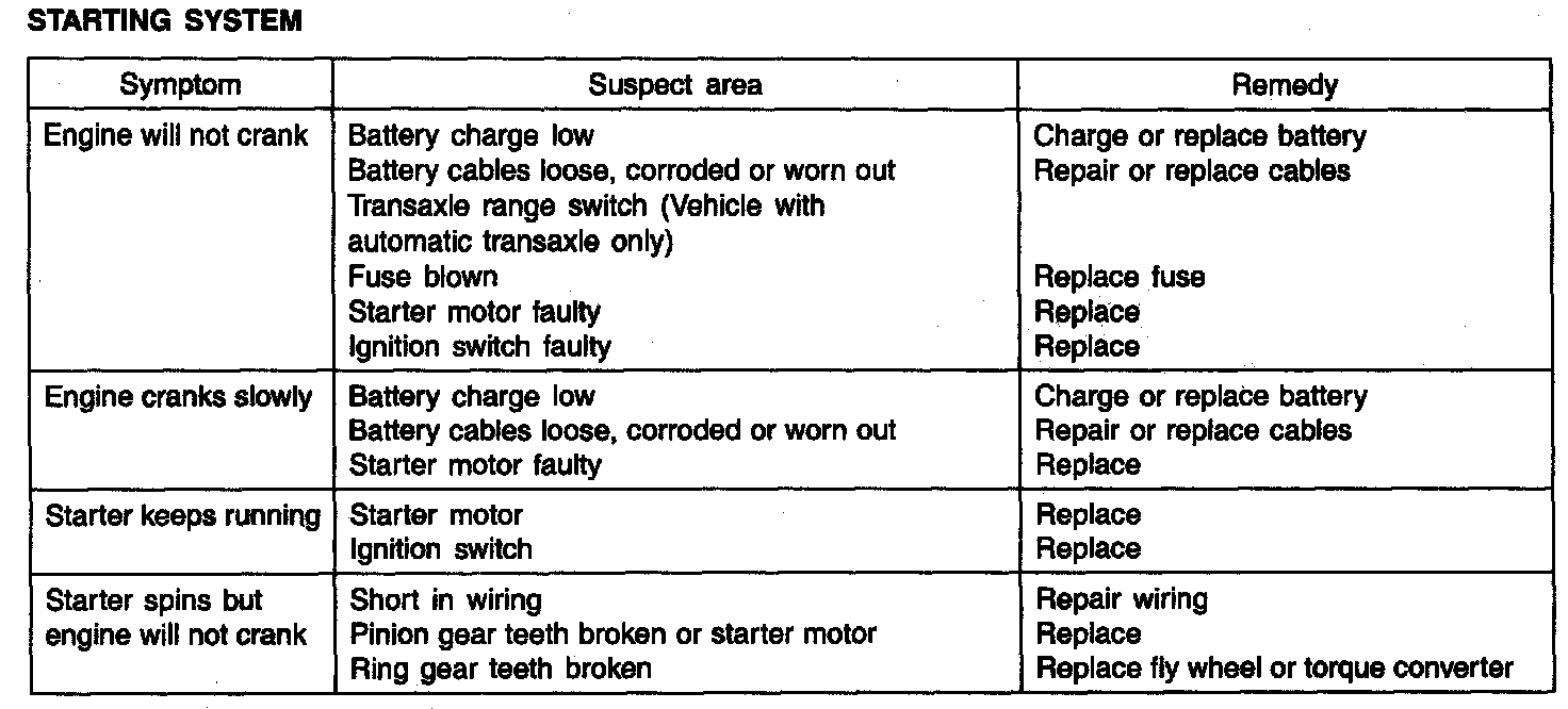 Troubleshooting - Starting System: