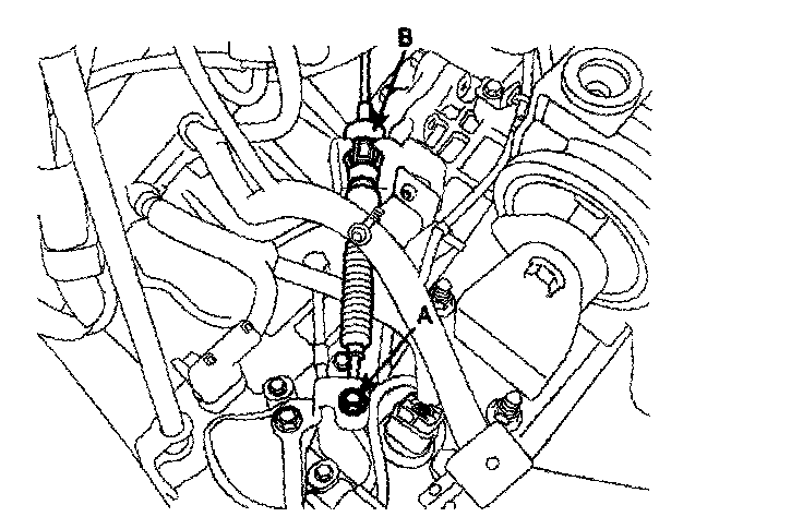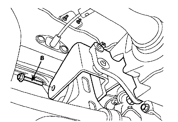 18 Install the shift cable by tightening the bolt (A) and clip (B).