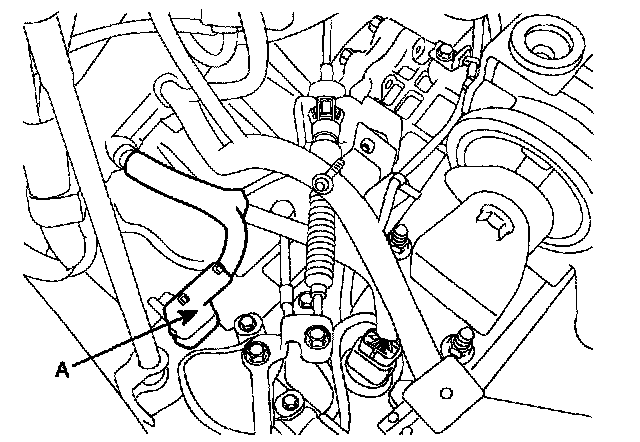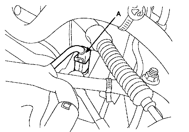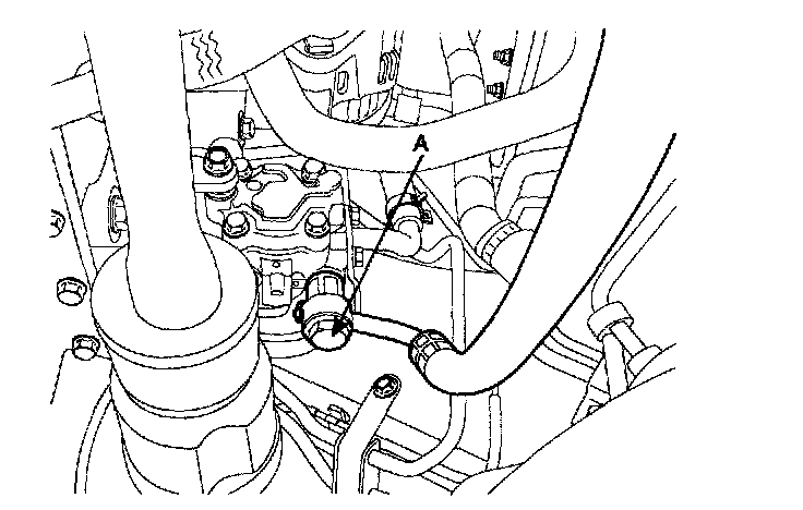 10. Connect the power steering pressure tube (A) to the power steering oil pump.