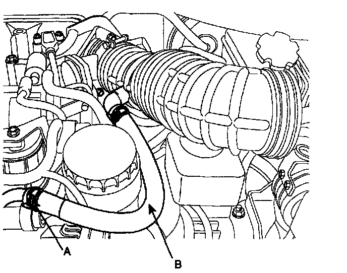 21. Connect the air cleaner hose (B) by fastening the clamp (A).