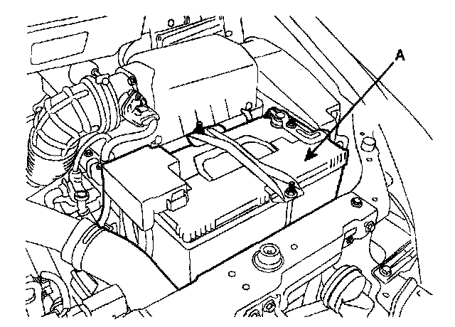20. Install the battery tray (B) by tightening the four mounting bolts (A).