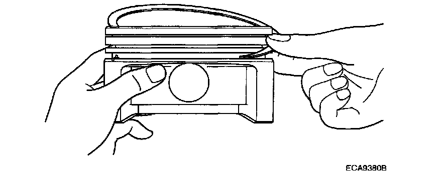 2. Check each piston ring for breakage, damage and abnormal wear. Replace the defective rings. When the piston requires replacement, its rings should also be replaced.
