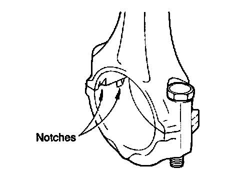 13. When a new connecting rod is installed, make sure that the notches for holding the bearing in place are on the same side.
