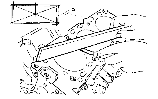 8. Check the top surface of the cylinder block for flatness. If the top surface exceeds the limit, grind to the minimum limit or replace.