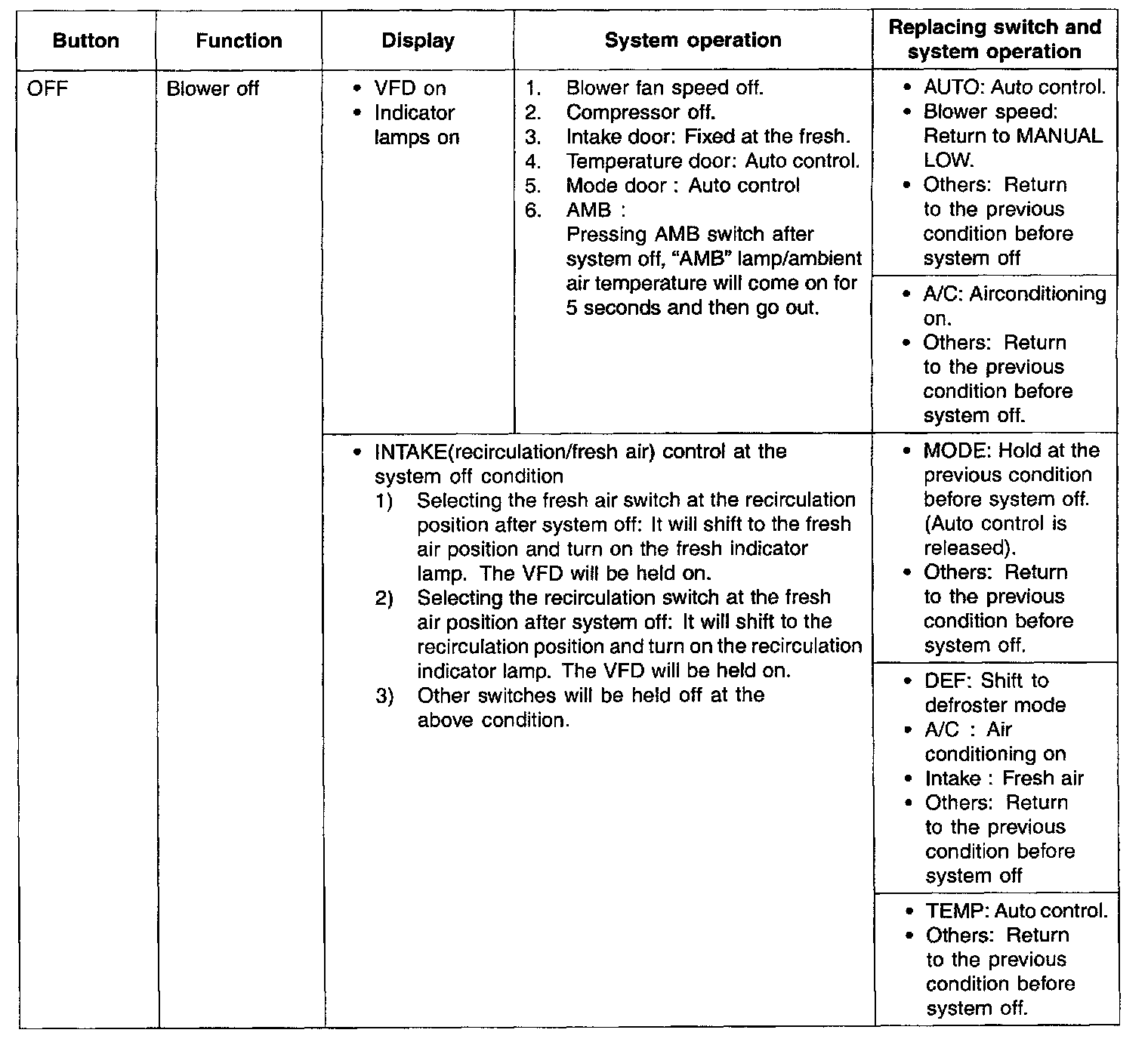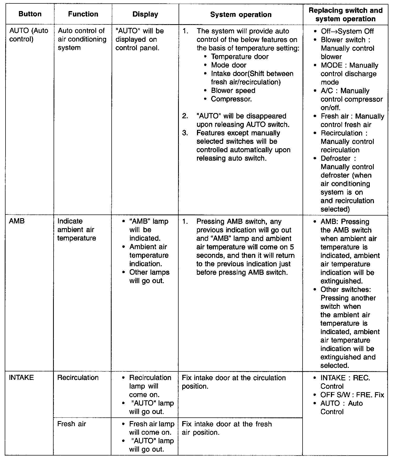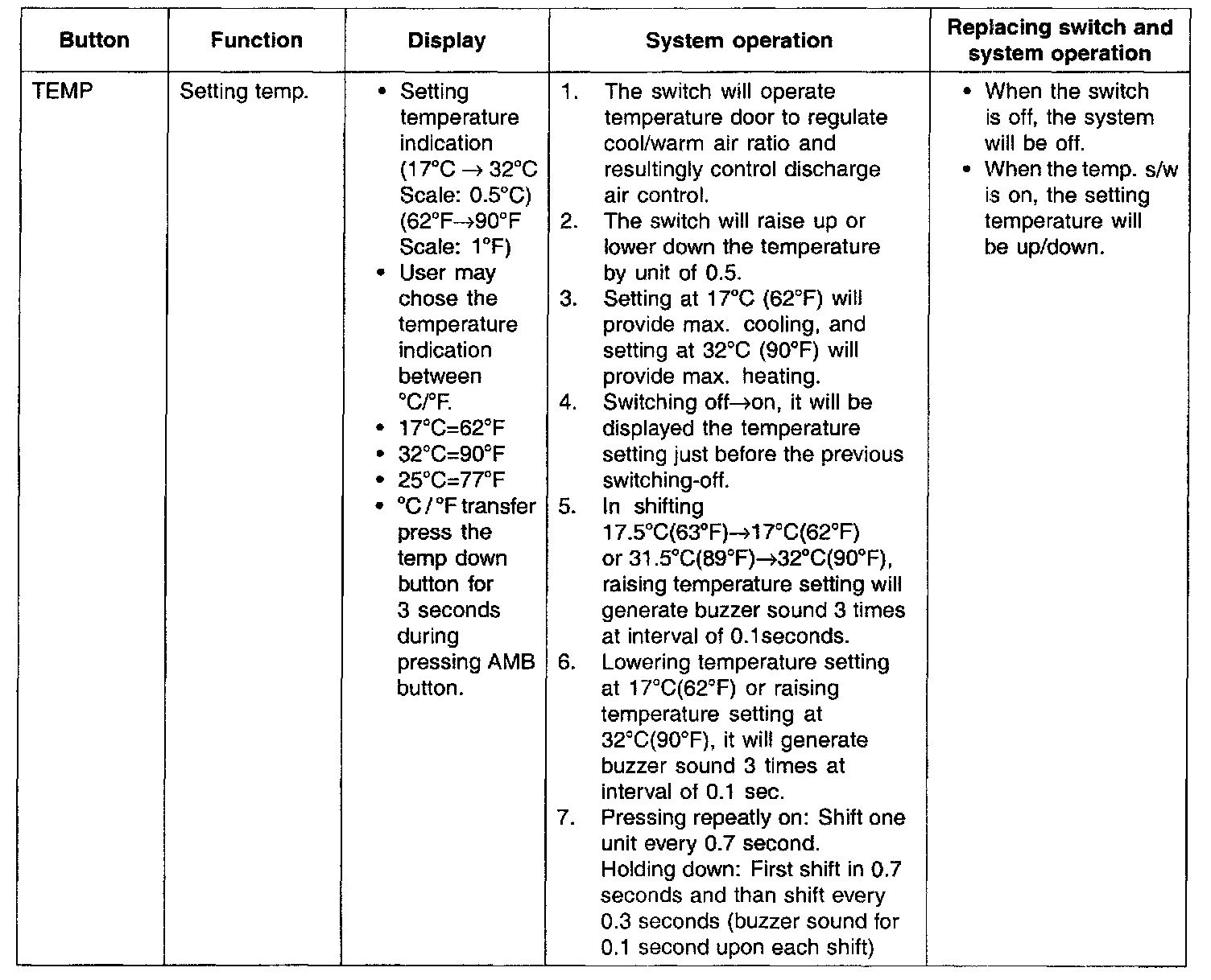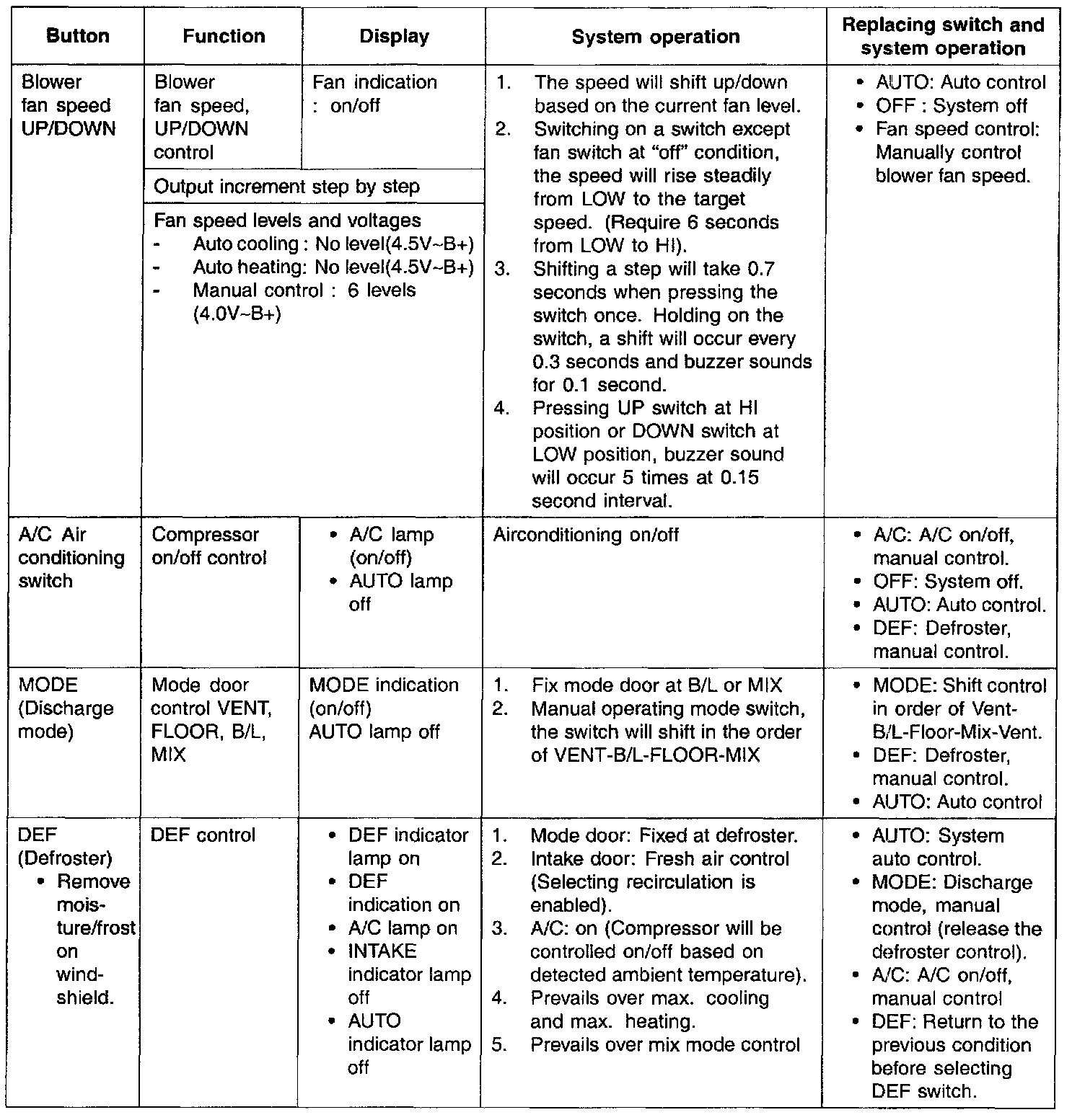 2. Manual air conditioning system: Combination of dial switch and one-touch button.