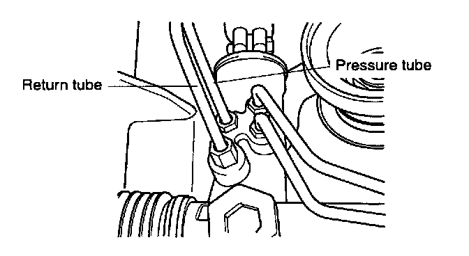 4) Disconnect the return tube from the steering gear box, and then disconnect the return hose and the tube.