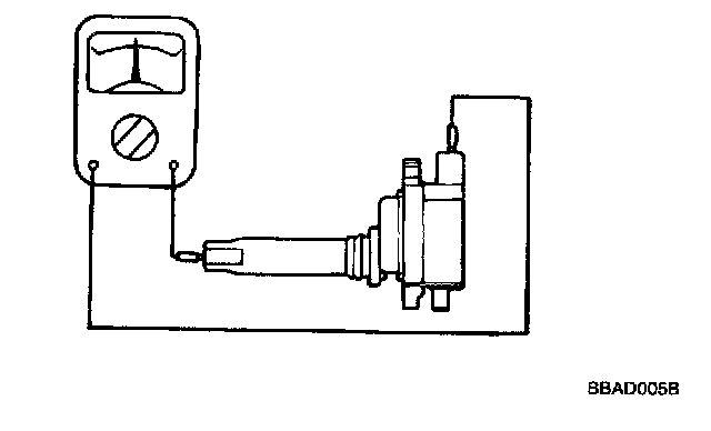 Measure the resistance between the high-voltage terminals of the ignition coil.