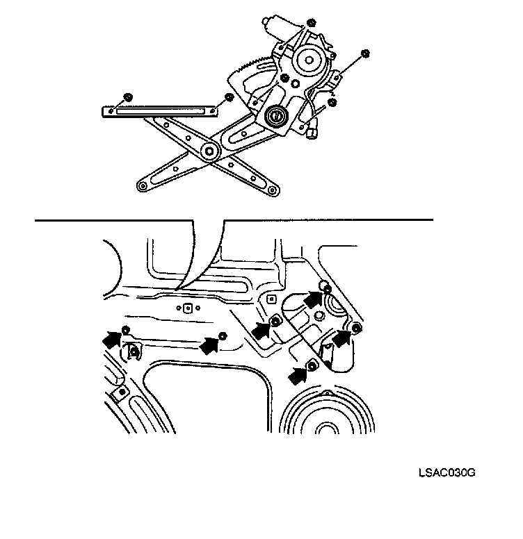 1. Remove window regulator nuts(6).