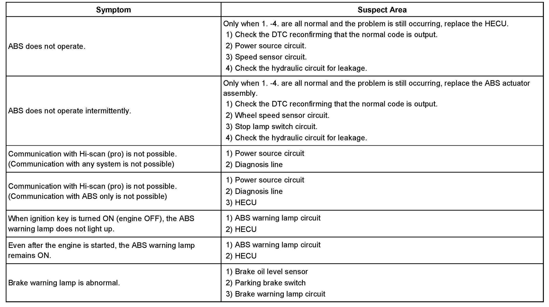 PROBLEM SYMPTOMS TABLEIf a normal code is displayed during the DTC check but the problem still occurs, check the circuits for each problem symptom in the order given in the table and proceed to the relevant troubleshooting.