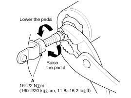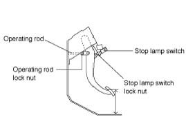 3. Adjust the brake pedal height by turning the operating rod with pliers (with the operating rod lock nut loosened), until the correct brake pedal height is obtained.