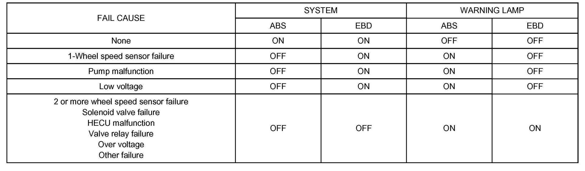 If the EBD fails, the EBD warning lamp (Parking brake lamp) lights up.