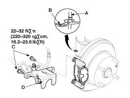 6. Install the brake caliper (D).