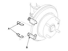 1. Install the pad springs (A) to the carrier (B).