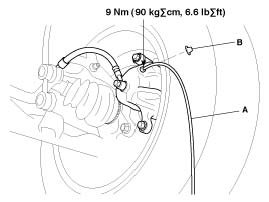 2. Connect a clear plastic tube to the wheel cylinder bleeder plug (A) and insert the other end of the tube into a half filled clear plastic bottle.