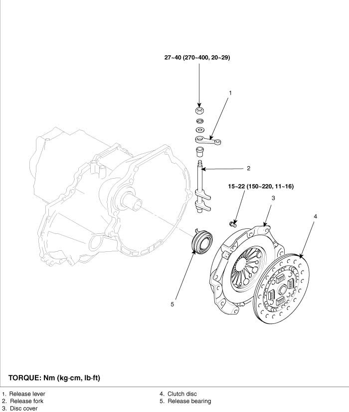 1) It is impossible to remove the transaxle assembly without performing this step because the clutch cover assembly, release bearing and release fork are held together.
