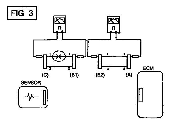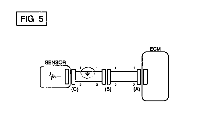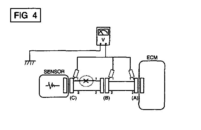 a. With each connector still connected, measure the voltage between the chassis ground and terminal 1 of each connectors (A), (B) and (C) as shown in [FIG. 4].