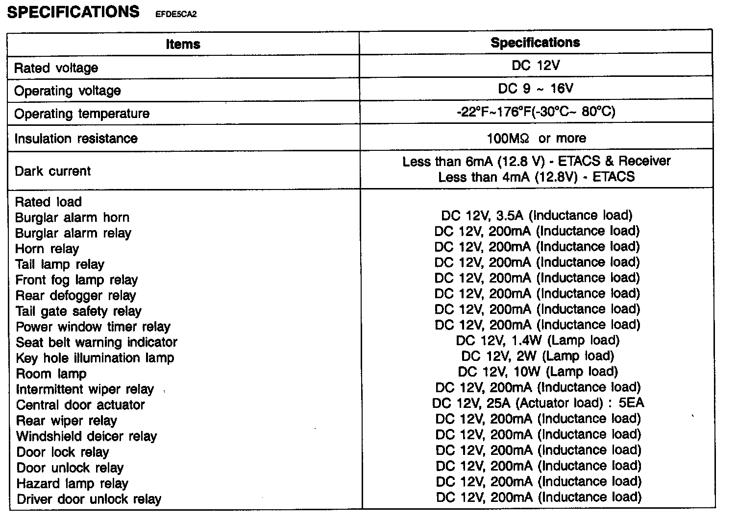 ETACS (Electronic Time And Alarm Control System) - Specifications: