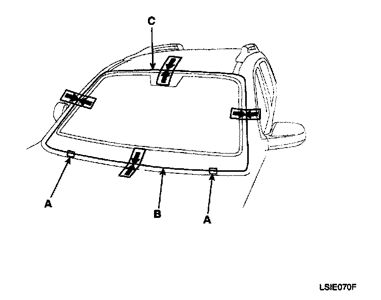 13. Reinstall all remaining removed parts. Install the rearview mirror after the adhesive has dried thoroughly. Advise the customer not to do the following things for two to three days: