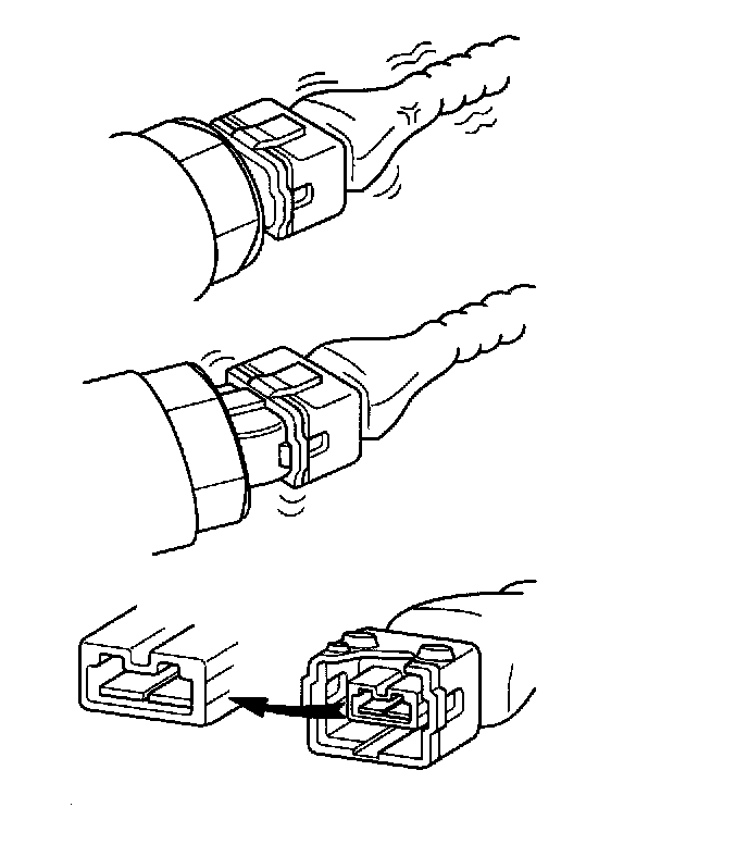 3. Slightly shake the connector and wiring harness vertically and horizontally.