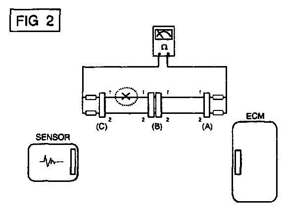 a. Disconnect connectors (A), (C) and measure resistance between connector (A) and (C) as shown in [FIG. 2].