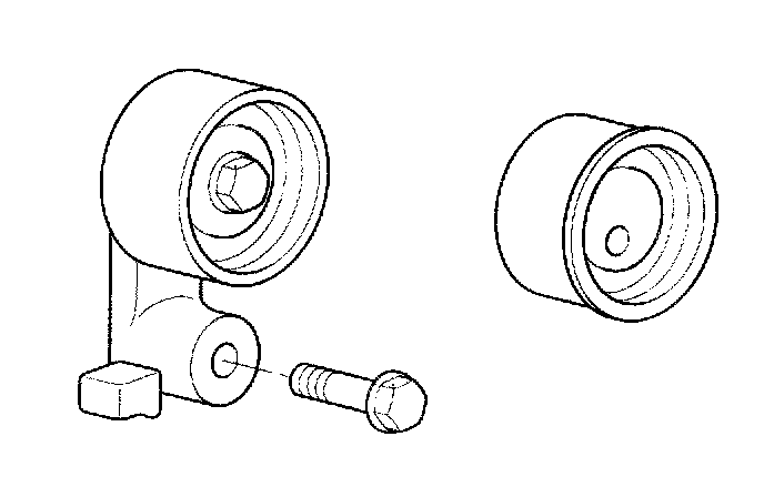 2. Inspect the tensioner pulley and the idler pulley for easy and smooth rotation and check for play or noise. Replace as necessary.