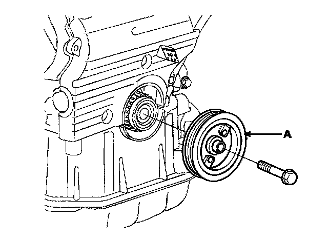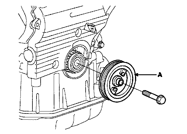 9. Remove the crankshaft pulley bolt and crankshaft pulley (A).