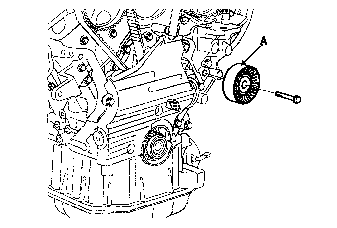 10. Remove the drive belt idler pulley (A).