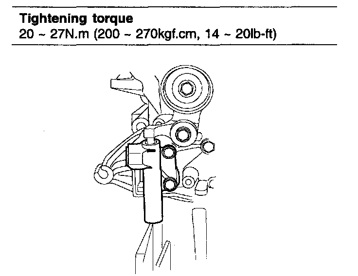 Tensioner arm fixed bolt 35 - 55 Nm (350 - 550 kgf.cm, 25 - 40 ft. lbs.)