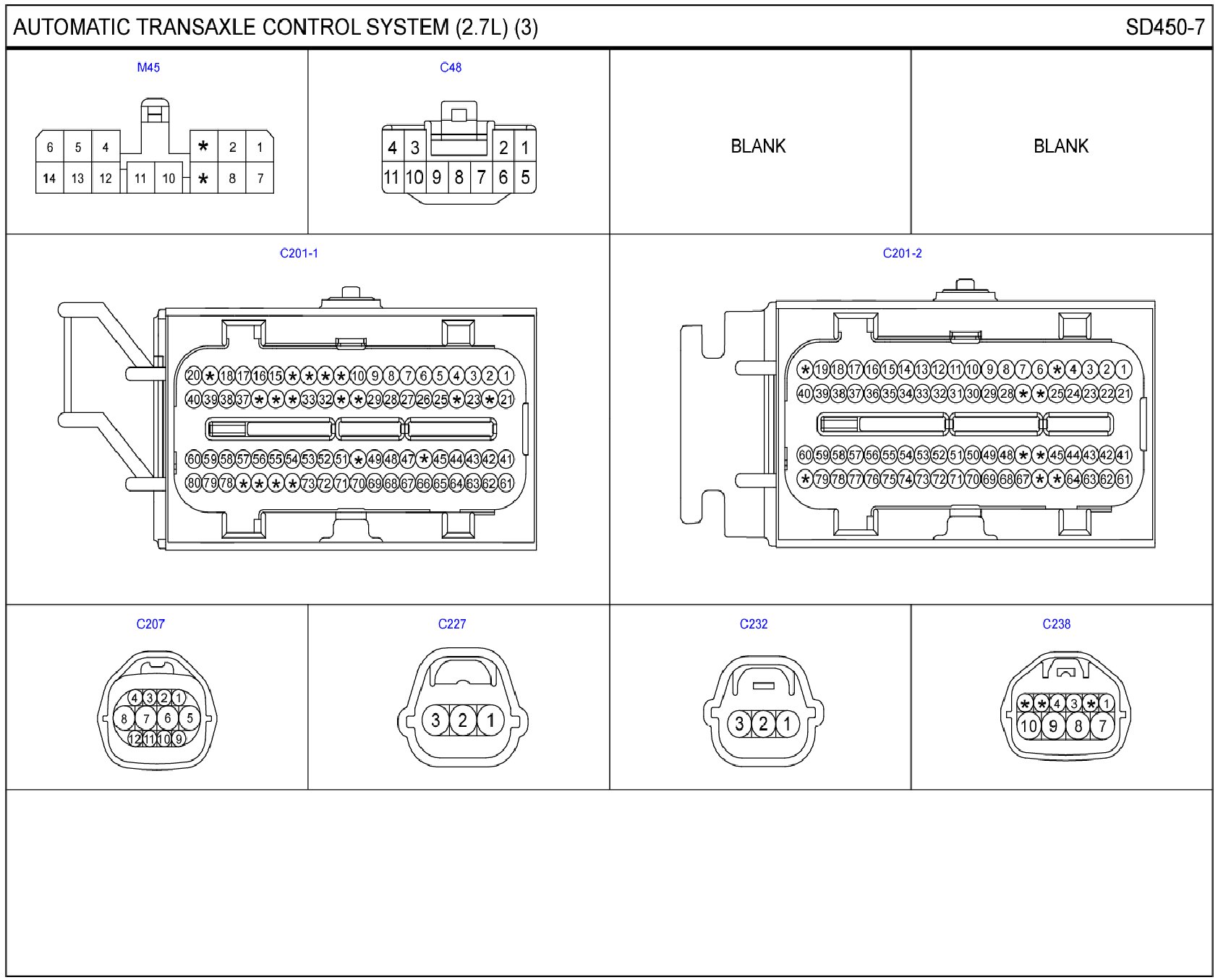 Automatic Transaxle Control System Connector Pin Outs: