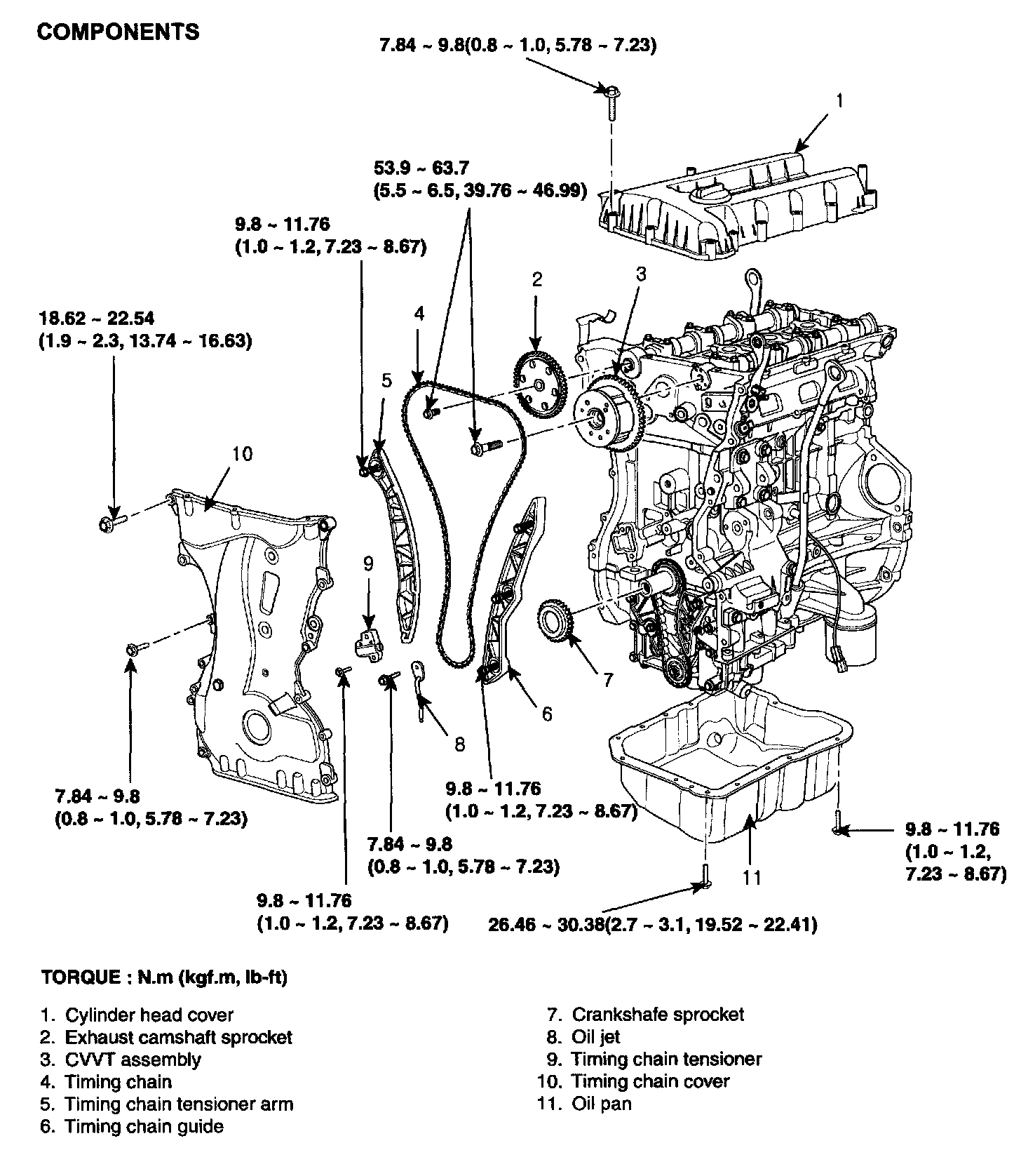 Tightening torque 7.84 - 9.8 Nm (0.8 - 1.0 kgf.m, 5.78 - 7.23 ft. lbs.)