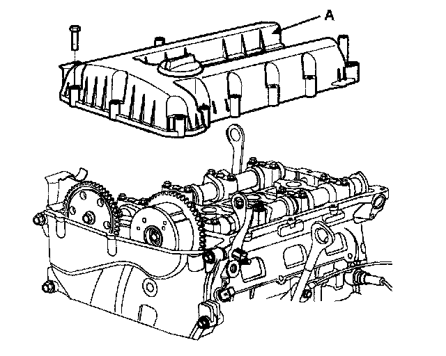 15. Loosen the cylinder head cover bolts and then remove the cylinder head cover (A) and gasket.