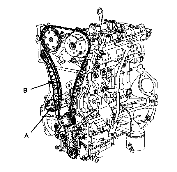 24. Remove the timing chain tensioner arm (B).