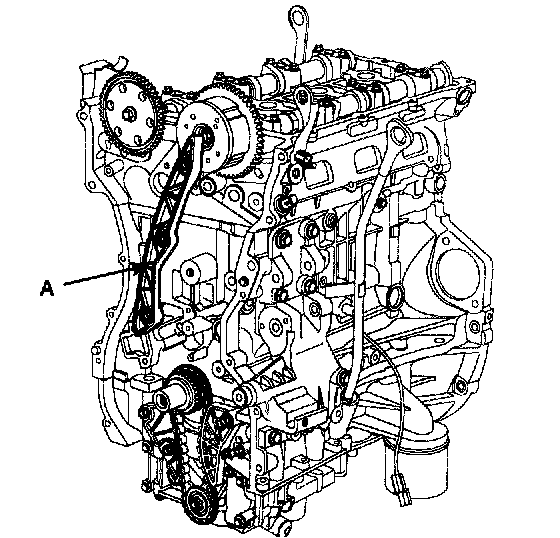 26. Remove the timing chain guide (A).