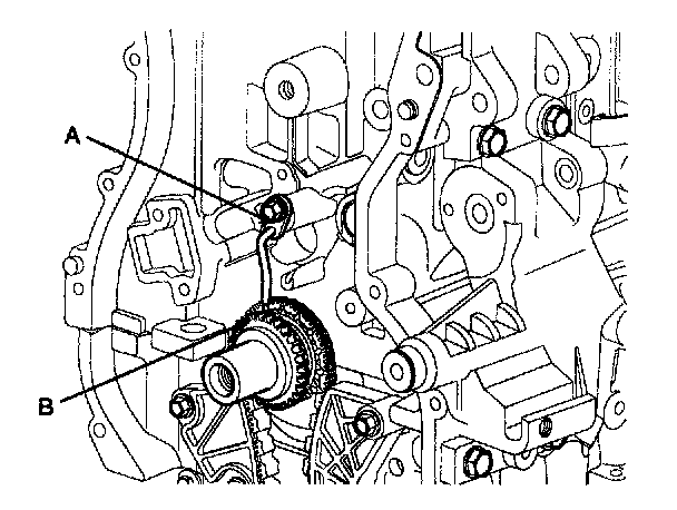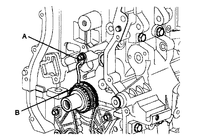6. Remove the balance shaft module (A) and balance shaft chain (B).
