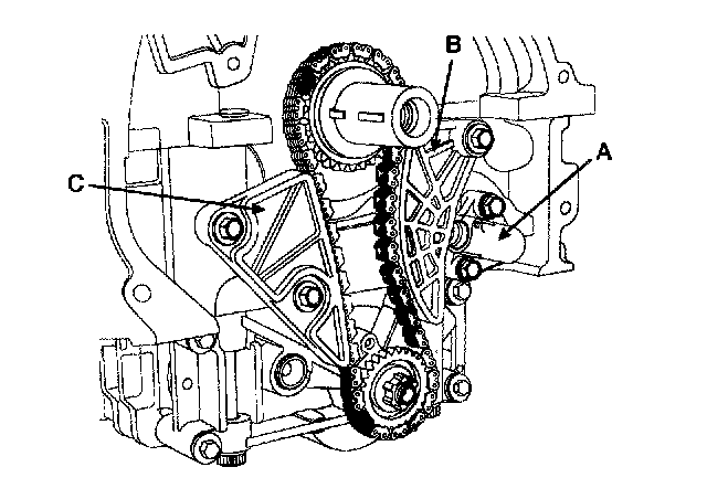 5. Remove the balance shaft chain guide (C).