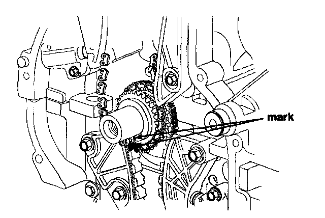 8. After rotating crankshaft 2 revolutions in regular direction (clockwise viewed from front), confirm the timing mark.