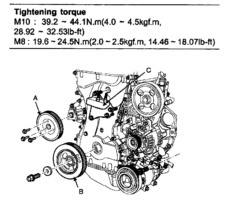 NOTE: Tensioner pulley bolt is left - handed screw