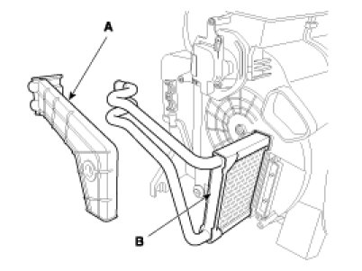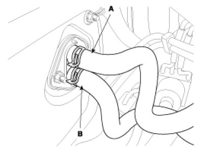 6. Disconnect the inlet (A) and outlet (B) heater hoses from the heater unit.