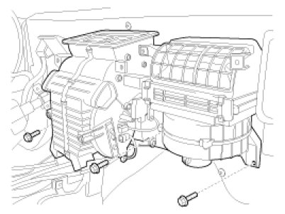 9. Remove the heater & blower unit after loosening 3 mounting bolts.