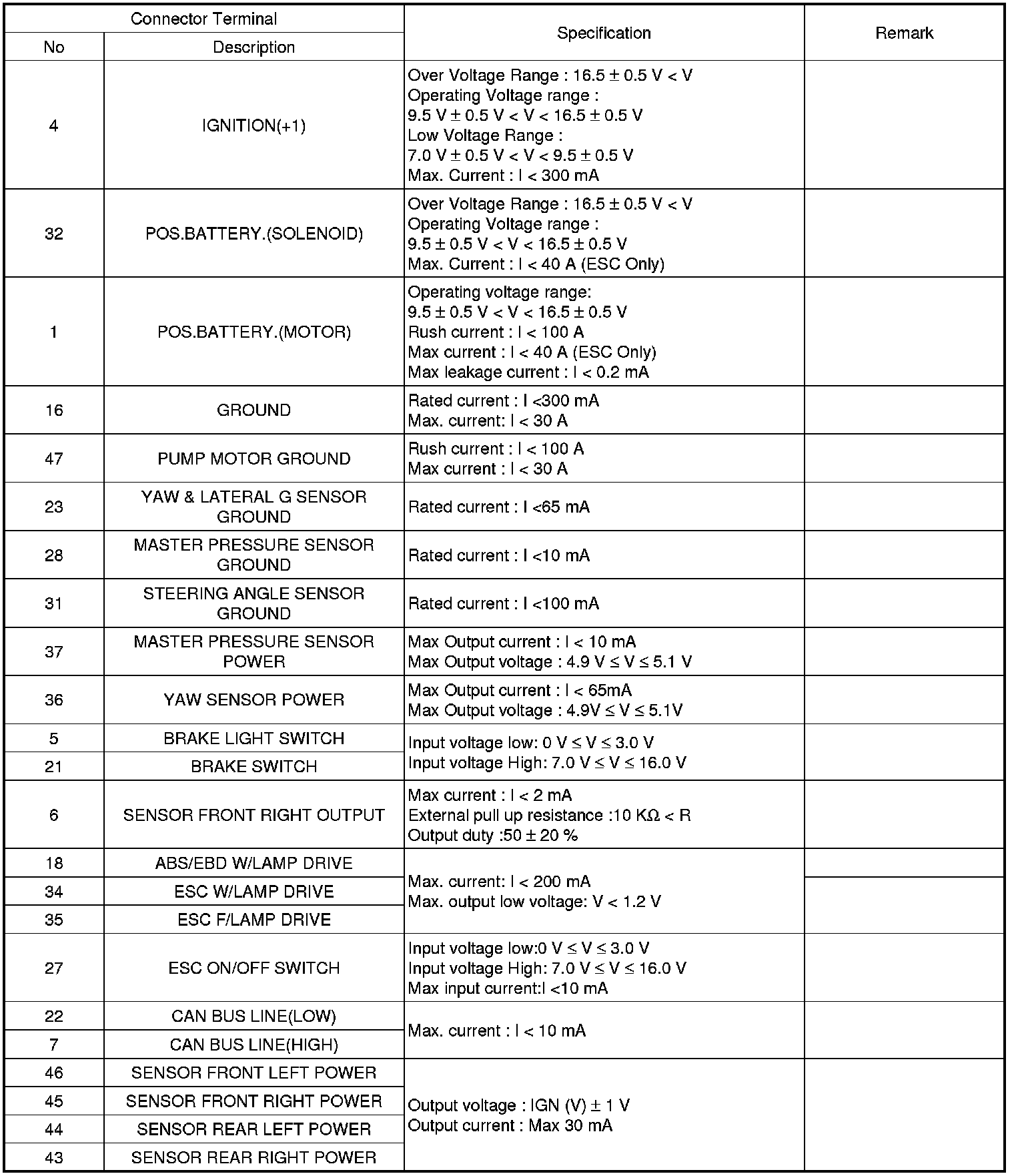 ESC connector input/output