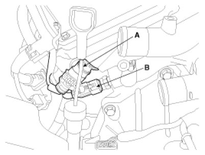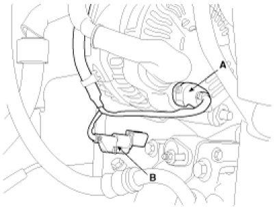 (7) Disconnect the bank 2 CMP sensor connector(A) and the ECT(Engine Coolant Temperature) sensor connector(B).