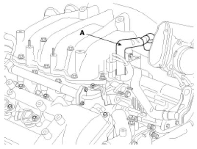 4. Remove the PCV(Purge Control Valve) hose(A).