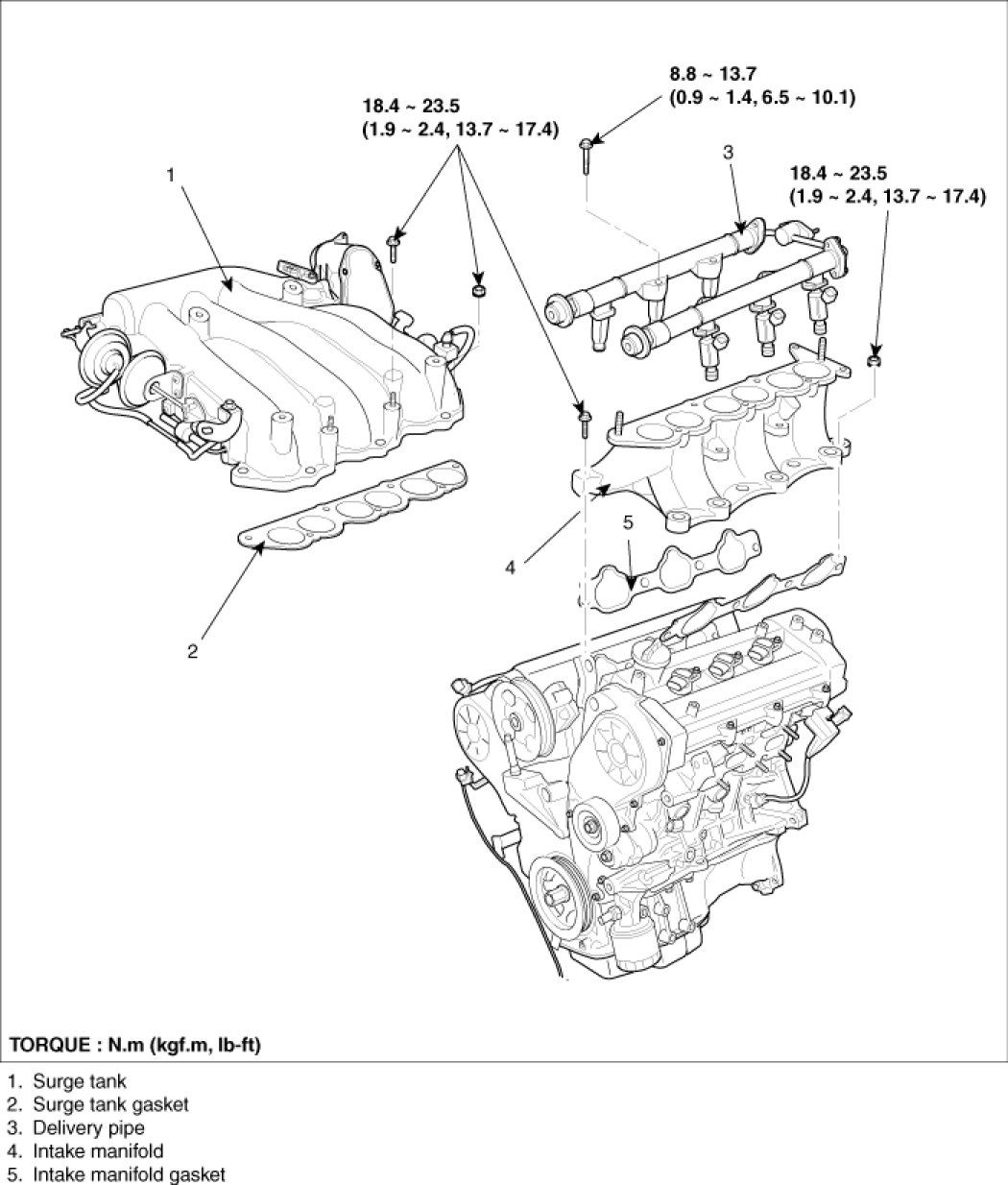Tightening torque: 18.6-23.5Nm (1.9-2.4kgf.m, 13.7-17.4lb-ft)