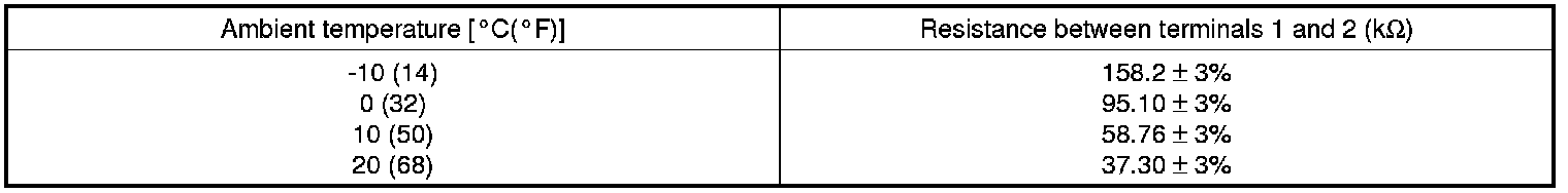 3. Check the resistance of ambient temperature sensor between terminals 1 and 2 whether it is changed by changing of the ambient temperature.