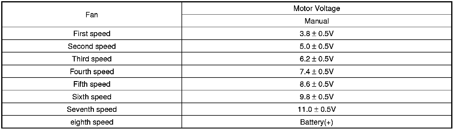 2. Manually operate the control switch and measure the voltage of blower motor between pin 1 and 2.