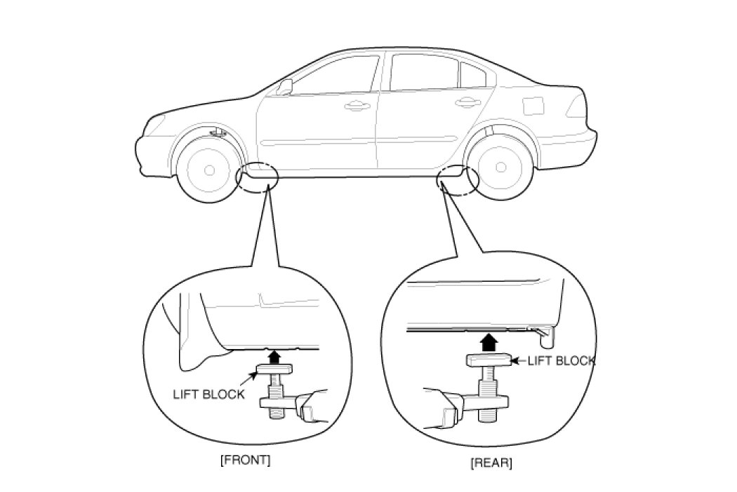 1. Place the lift blocks under the support points as shown in the illustration.